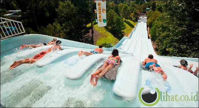 [lihat.co.id] - Water park di , Queensland, Australia ini memiliki beberapa wahana yang akan membuat jantung pengunjungnya berdegup tak karuan. Coba saja bermain di Kamikaze dan cobalah untuk tidak teriak. Rasanya tak mungkin diam saja karena wahana yang memiliki kemiringan hingga 75 derajat ini akan mengajak Anda meluncur kencang dengan ban.
