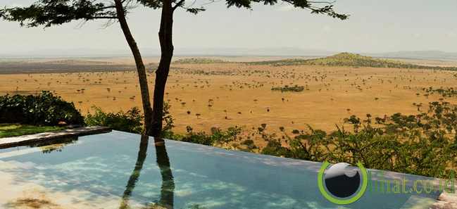 [lihat.co.id] - Sambil berenang di hotel ini, traveler bisa menonton migrasi tahunan kijang dan zebra di dataran Serengeti. Kolam renang tanpa tepian ini dibangun di atas tanjung tebing halaman depan pondok.