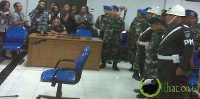Sesaat sebelum amar putusan dibacakan, Ketuawww lihat co .idMajelis Hakim Letkol Chk Sugeng Sutrisno meminta dua petugas berdiri mengapit terdakwa. Hakim mengantisipasi reaksi terdakwa atas putusan hakim.