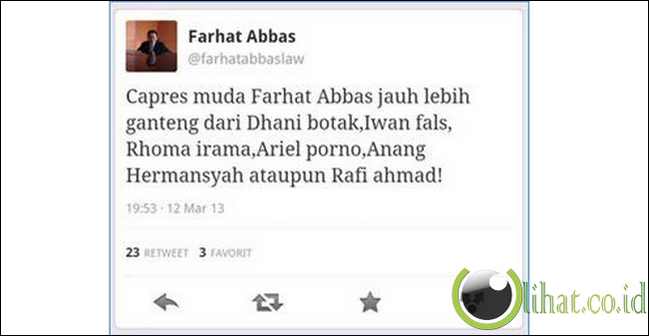Oleh karena itu, kami akan mencoba menyikapi segala tingkah laku Farhat Abbas dari sudut pandang yang berbeda. Dan menurut kami Farhat Abbas memang layak jadi Presiden.berikut 8 Hal yang Membuat Farhat Abbas Layak Jadi Presiden Indonesia,dikutip dari Kaskus: