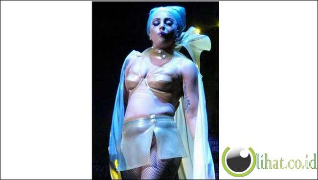 [lihat.co.id] - Saat tampil di Sydney, Australia 2012 silam, pelantun 'Born This Way' itu terlihat lebih gemuk. Perut Gaga lebih buncit dan kemak di bagian pinggangnya menyembul keluar dari roknya yang ketat.