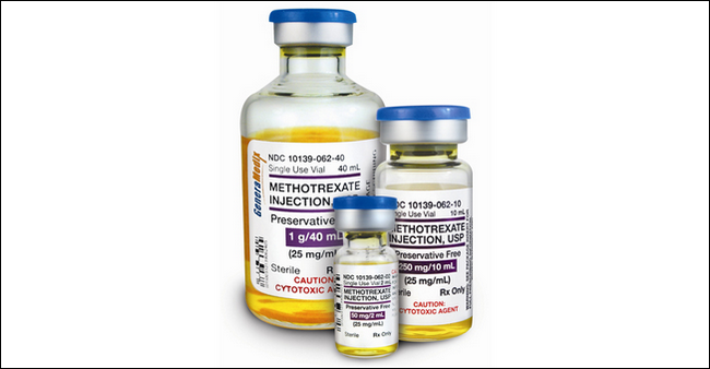 Cara ini mirip dengan RU 486. Hanya, obat ini disuntikkan ke dalam badan. MTX bekerja dengan menekan pertumbuhan pesat trophoblastoid, selaput yang menyelubungi embrio yang juga merupakan cikal bakal plasenta.