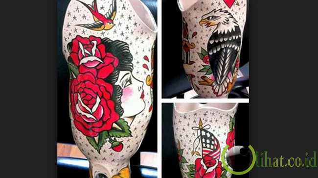 [lihat.co.id] - Tak jauh berbeda dengan kaki palsunya Reddit, Tim Beck juga melakukan hal yang sama. Ia mengecat sebuah kaki palsu dengan gambar lukisan yang indah dengan berbagai macam tema yang diinginkan kliennya.