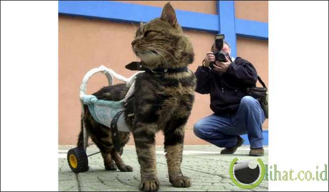 [lihat.co.id] - Seekor kucing berusia 7 tahun bernama Cici mengalami kecelakaan lalu lintas yang menyebabkan kaki belakangnya cacat. Namun dengan bantuan sokongan sebuah alat, Cici berhasil mengikuti kontes “Cat Show 2002? di kota Izmir, Turki.